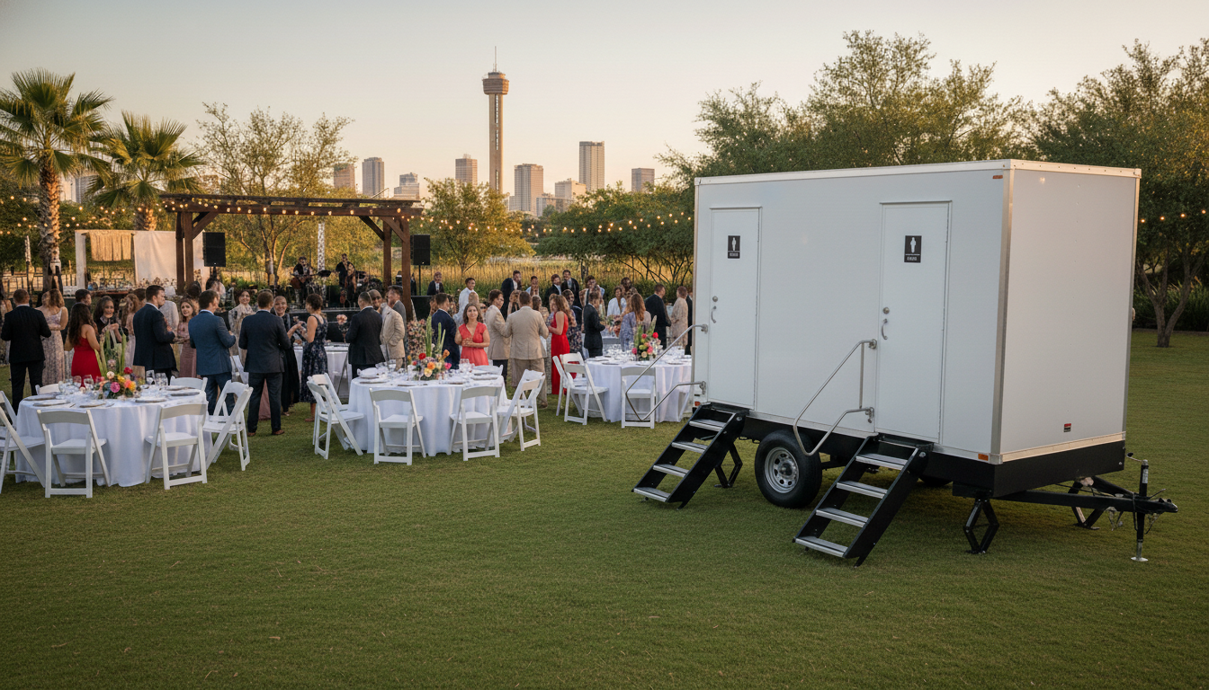 We specialize in mobile restroom trailer rentals for weddings, proudly operating as a local small business in San Antonio, Texas.